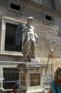 Yesterday, a group of 11 of us went down the street to Castel Sant' Angelo. From the first time we drove past it on our first bus ride, I've wanted to visit it. My need to see it increased even more when I remembered that it was the location of the infamous battle scene in Dan Brown's Angels and Demons. I must admit, after vising the Castle, then rereading Dan Brown's description of it, I was thoroughly confused on where Brown got his information. In fact, after visiting many of the sites described in Angels and Demons, I'm fairly certain that he actually never visited Rome. But that's a discussion for another blog.